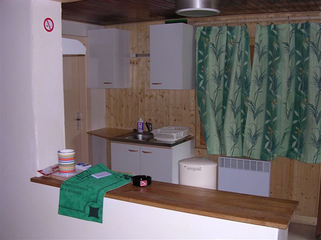 - Une cuisine ouverte sur le salon, toute équipée. Plaque 4 feux au gaz, frigo, micro-onde.